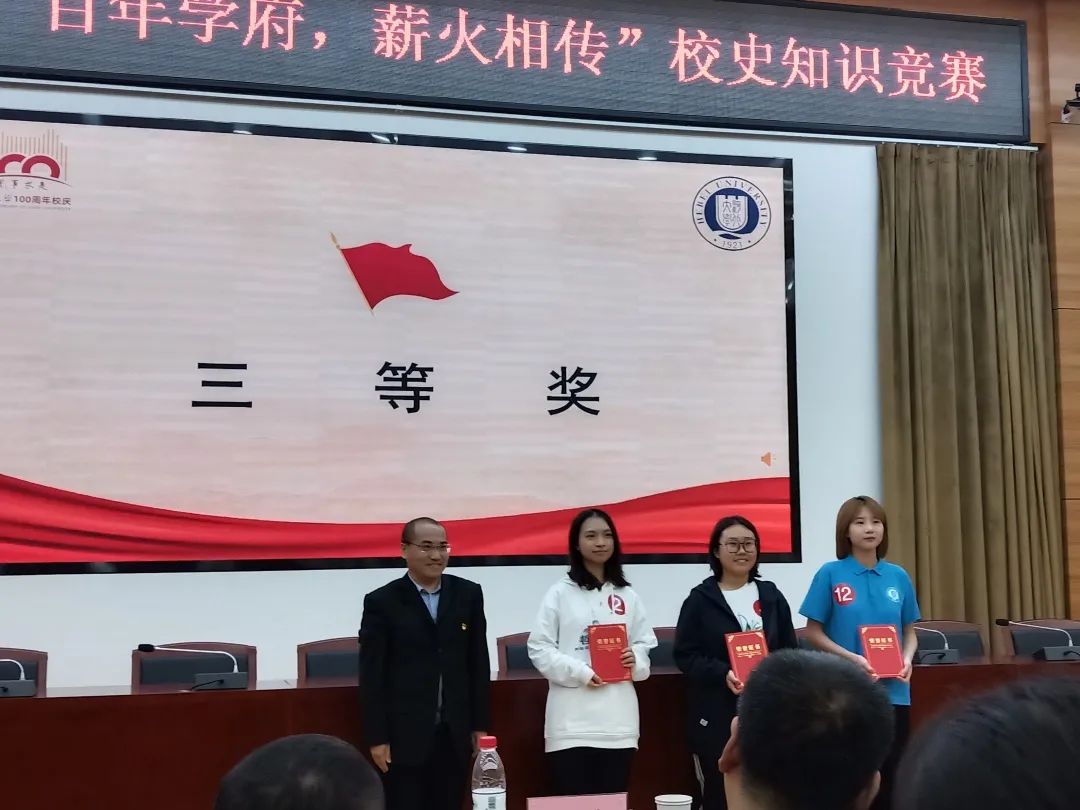 为赓续百年校史,献礼河大校庆,河北大学举办“百年河大,薪火相传”校史知识竞赛。10月7日下午3点,校史决赛在河北大学本部主楼304报告厅举行。由2020级社会工作专业张佳静、高楚桐同学,2020级哲学专业张楠同学组成的“知行小队”,代表公海赌船 参加决赛。