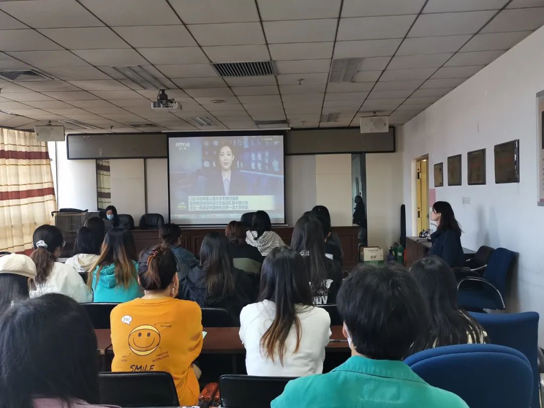 与会师生共同收看了新闻联播关于“习近平总书记考察中国人民大学”的新闻报道,学习了习近平总书记在中国人民大学的重要讲话精神。总书记发起“广大青年要做社会主义核心价值观的坚定信仰者、积极传播者、模范践行者,向英雄学习、向前辈学习、向榜样学习,争做堪当民族复兴重任的时代新人,在实现中华民族伟大复兴的时代洪流中踔厉奋发、勇毅前进”的号召,引起了师生强烈共鸣,并对此展开热烈讨论。同学们纷纷表示,作为新时代青年要急流勇进,担当起大国青年的时代责任,走与人民群众相结合的成长道路;感应时代脉搏,把自己的所学所思应用到实践中去,苦干实干、不怕吃苦、不惧风浪,牢记党的教诲,牢记总书记的嘱托,争取跑出当代青年的最好成绩!